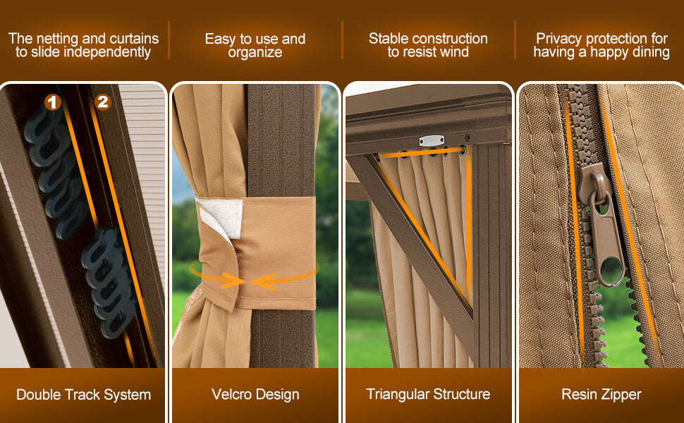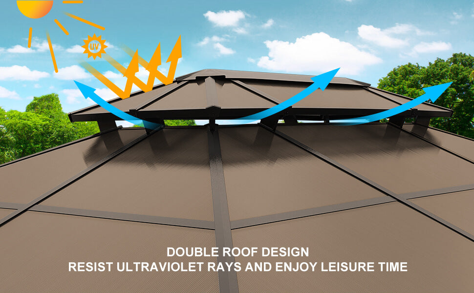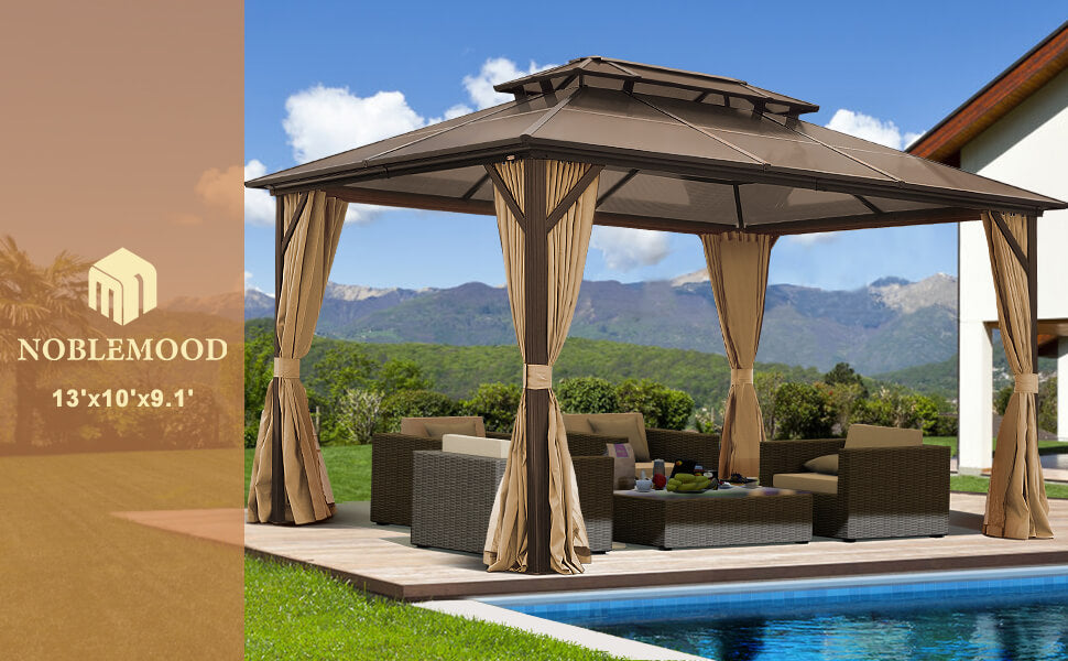 Made of sturdy power coated aluminum frame, 10x13ft gazebo features stable structure for year long use.