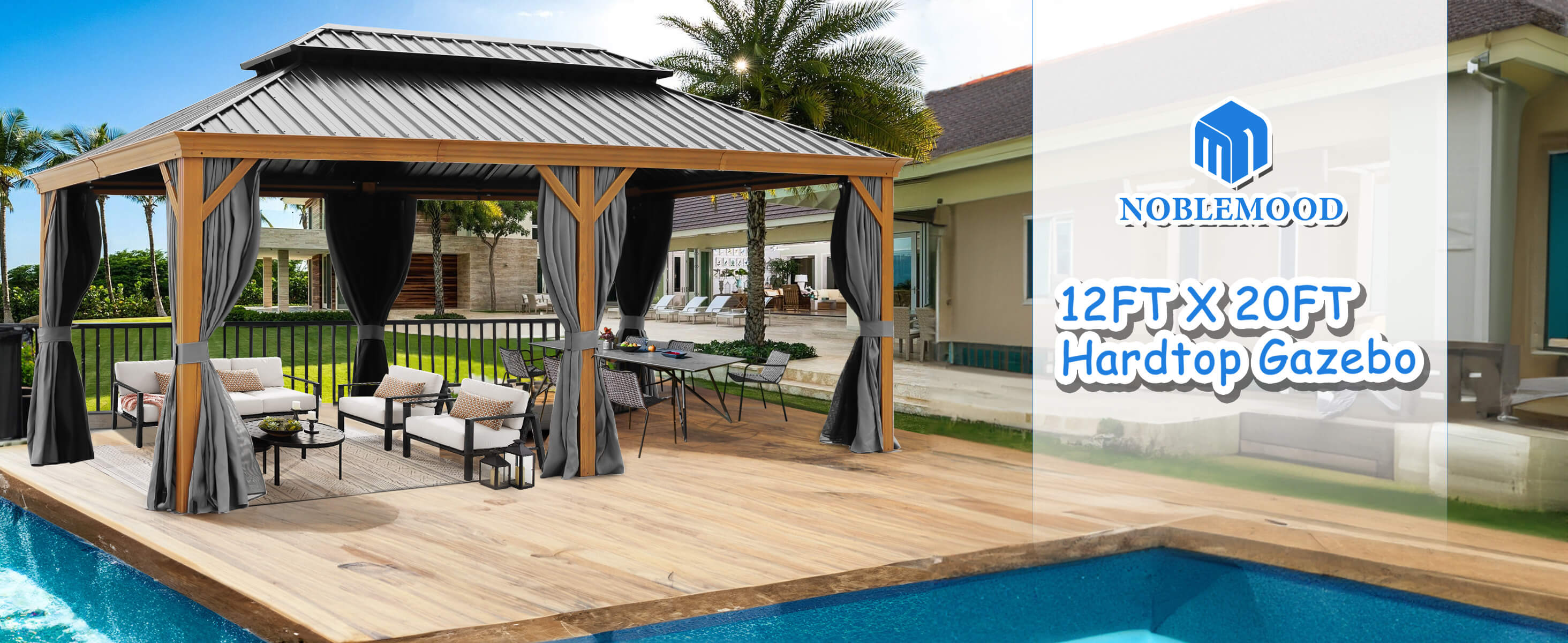 【SPACIOUS SPACE】12x20ft patio gazebo with 240 sq. ft. coverage provides ample space for patio sofa or dining set. NOBLEMOOD offers a wide range of outdoor gazebos in various sizes, styles, and materials, you can choose it depending on your need of courtyards, backyard, swimming pool.