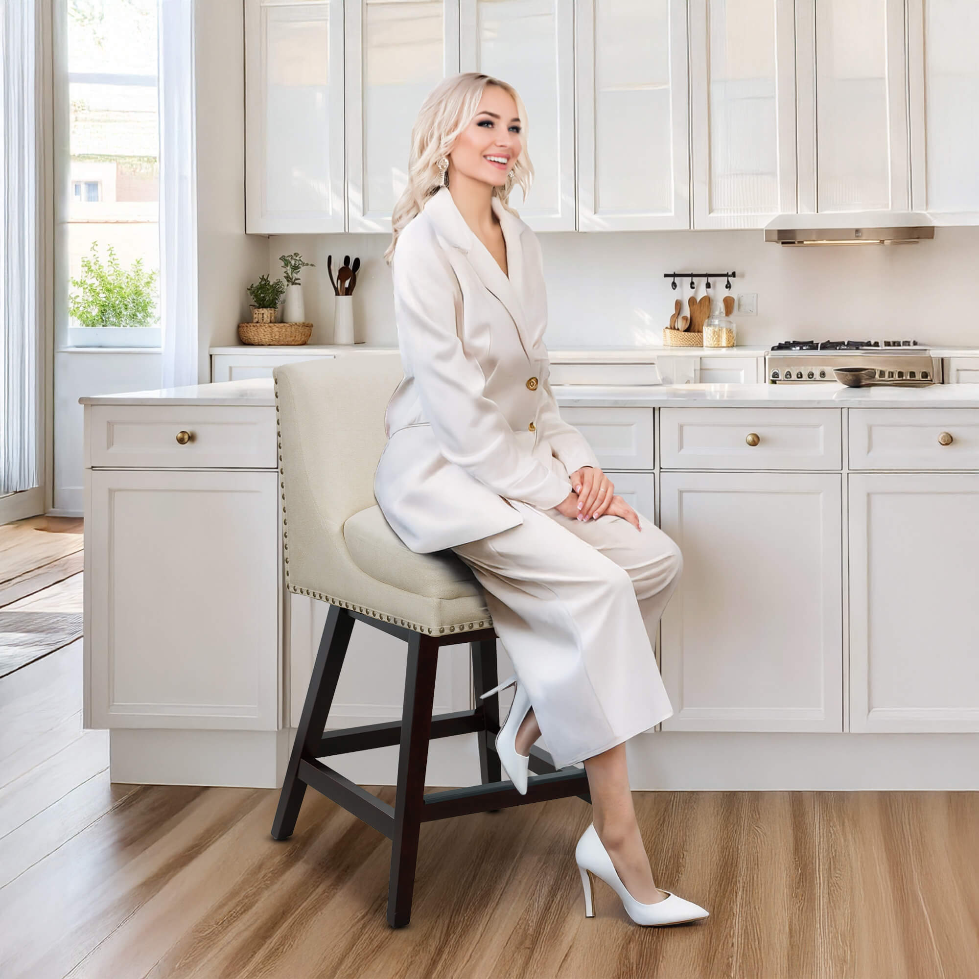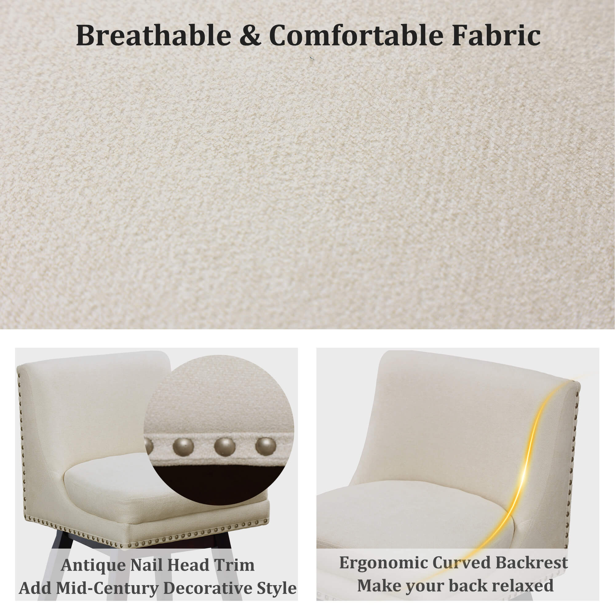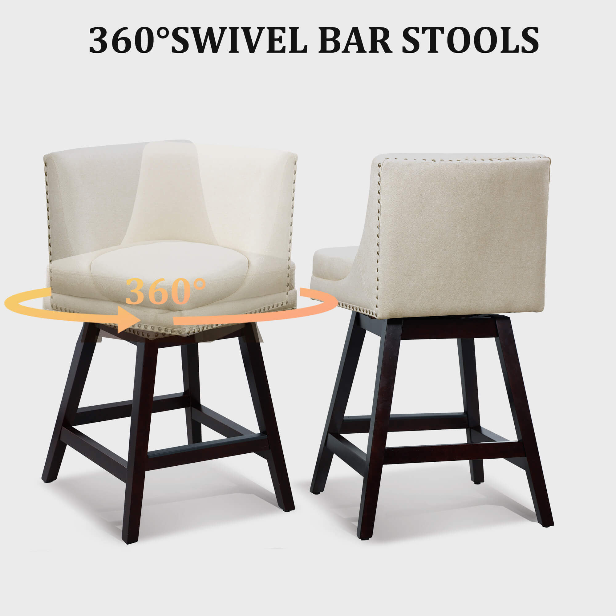 26” Counter Height Bar Stools Set of 2, Upholstered Island Chairs Stool Bar Chairs with 360° Swivel, Beige