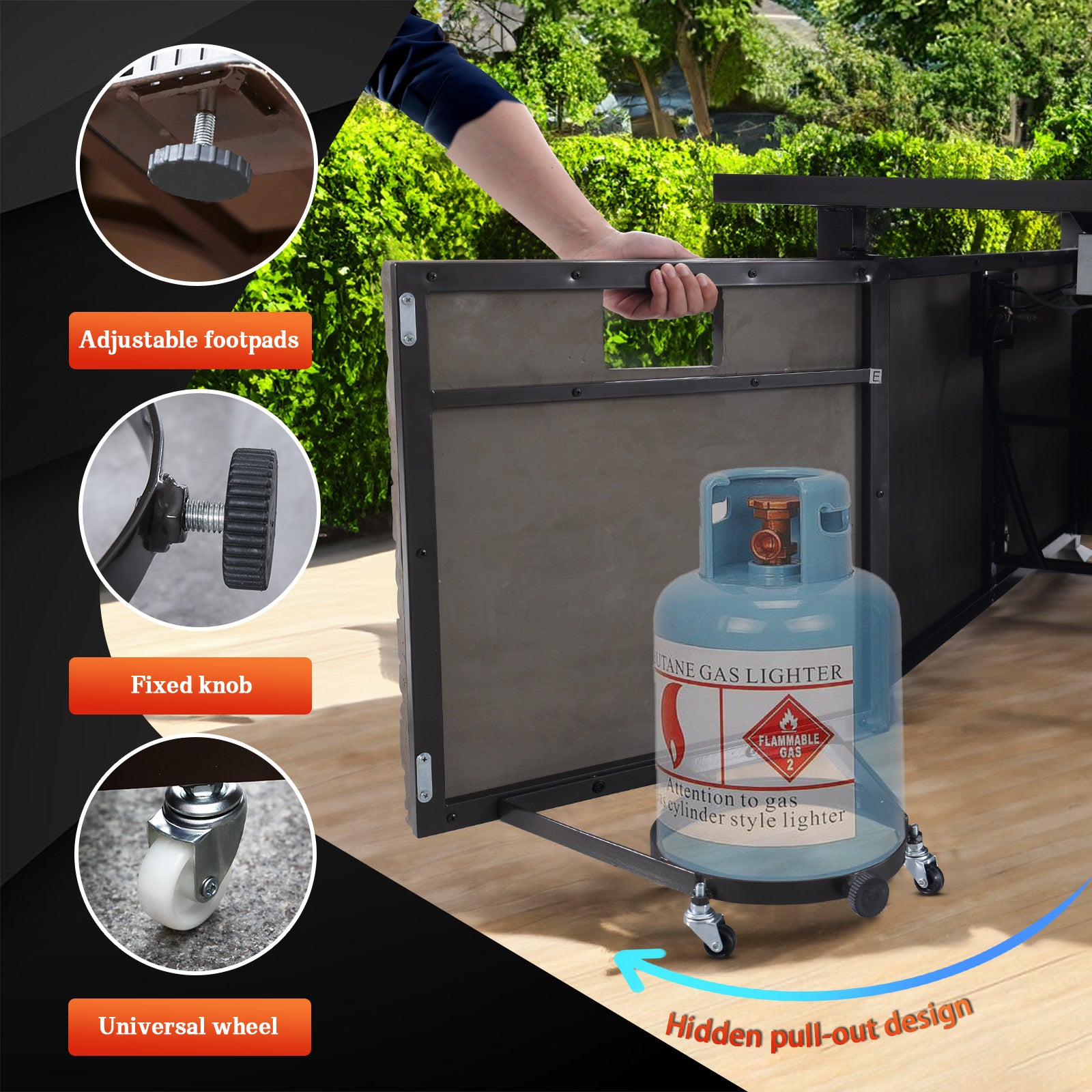 48inch fire pit table with aluminum tabletop & faux stone finish is easy to match various outdoor design. The tabletop can be easily converted into an outdoor dining table to offer ample space to place drinks and snacks.